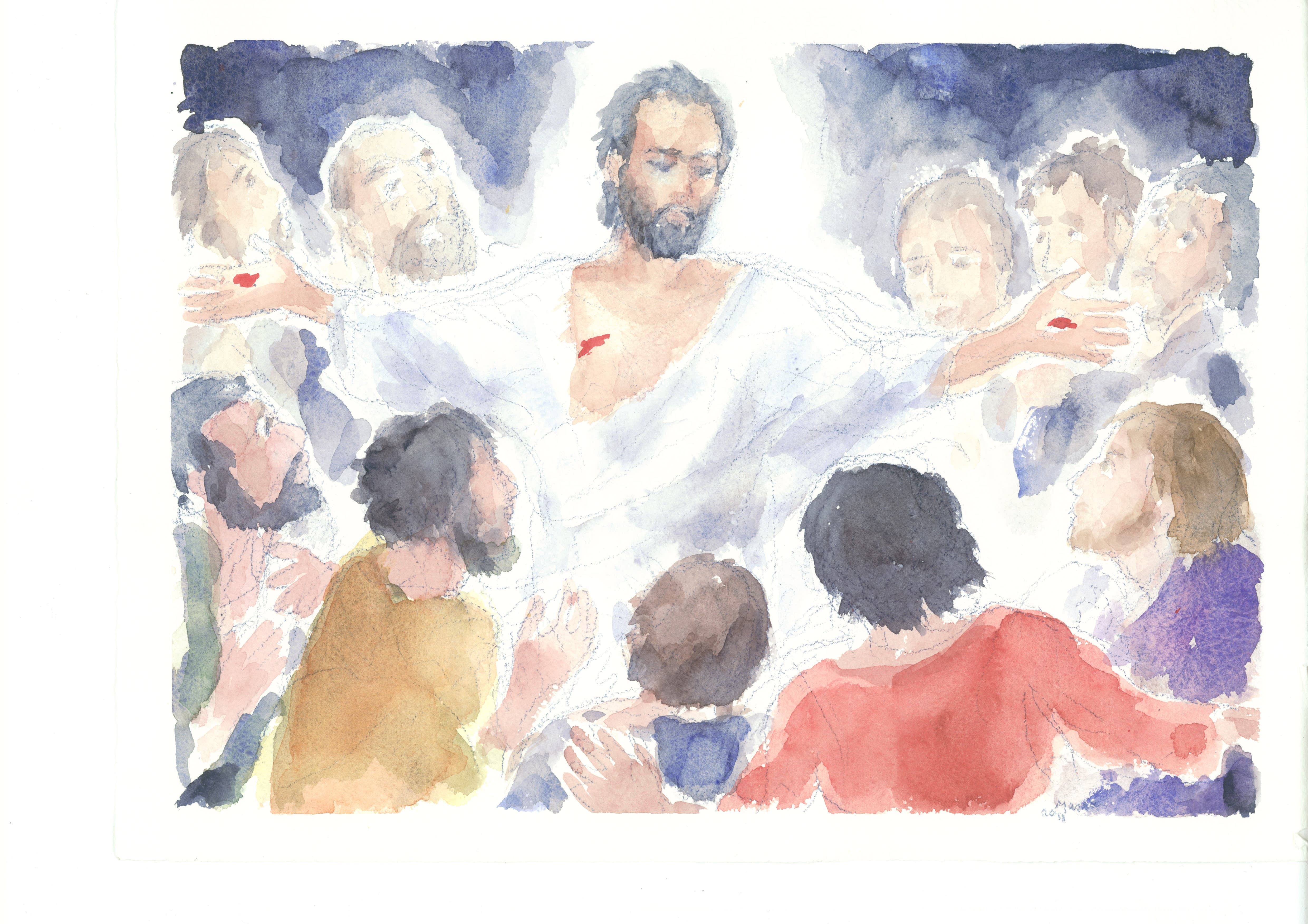 E dona occhi luminosi per riconoscere le tue piaghe in coloro che soffrono per la malattia, l’angoscia, la morte dei cari.