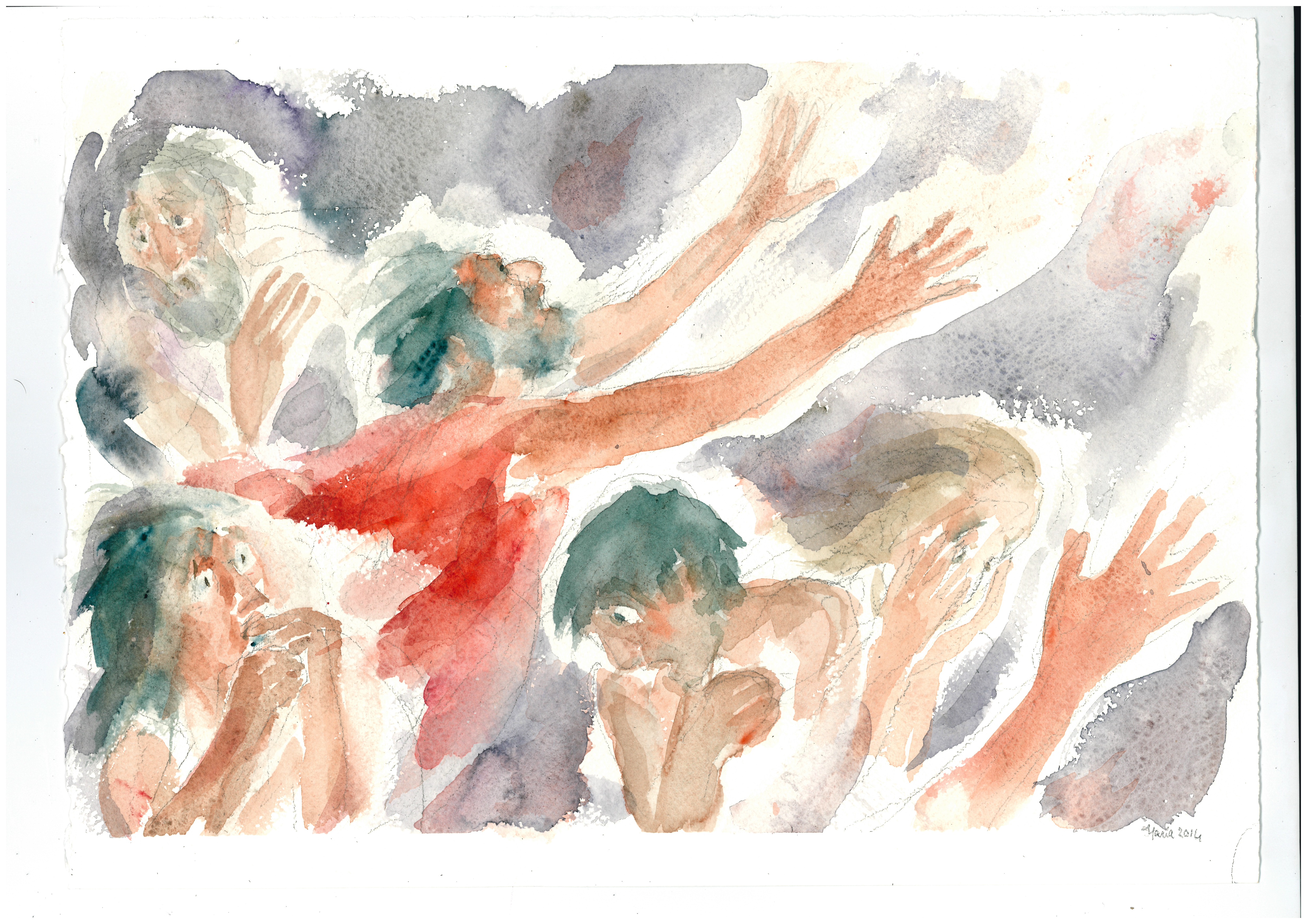 Lazzaro portato dagli angeli, acquarello di Maria Cavazzini Fortini, settembre 2014