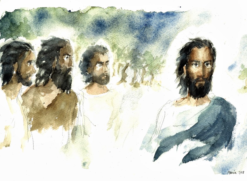 Giovanni stava con due dei suoi discepoli e, fissando lo sguardo su Gesù che passava, disse: «Ecco l’agnello di Dio!». E i suoi due discepoli, sentendolo parlare così, seguirono Gesù. Gesù allora si voltò e, osservando che essi lo seguivano, disse loro: «Che cosa cercate?». Gli risposero: «Rabbi – che, tradotto, significa maestro –, dove dimori?». Disse loro: «Venite e vedrete». Andarono dunque e videro dove egli dimorava e quel giorno rimasero con lui; erano circa le quattro del pomeriggio. Uno dei due che avevano udito le parole di Giovanni e lo avevano seguito, era Andrea, fratello di Simon Pietro. Egli incontrò per primo suo fratello Simone e gli disse: «Abbiamo trovato il Messia» – che si traduce Cristo – e lo condusse da Gesù. Fissando lo sguardo su di lui, Gesù disse: «Tu sei Simone, il figlio di Giovanni; sarai chiamato Cefa» – che significa Pietro.