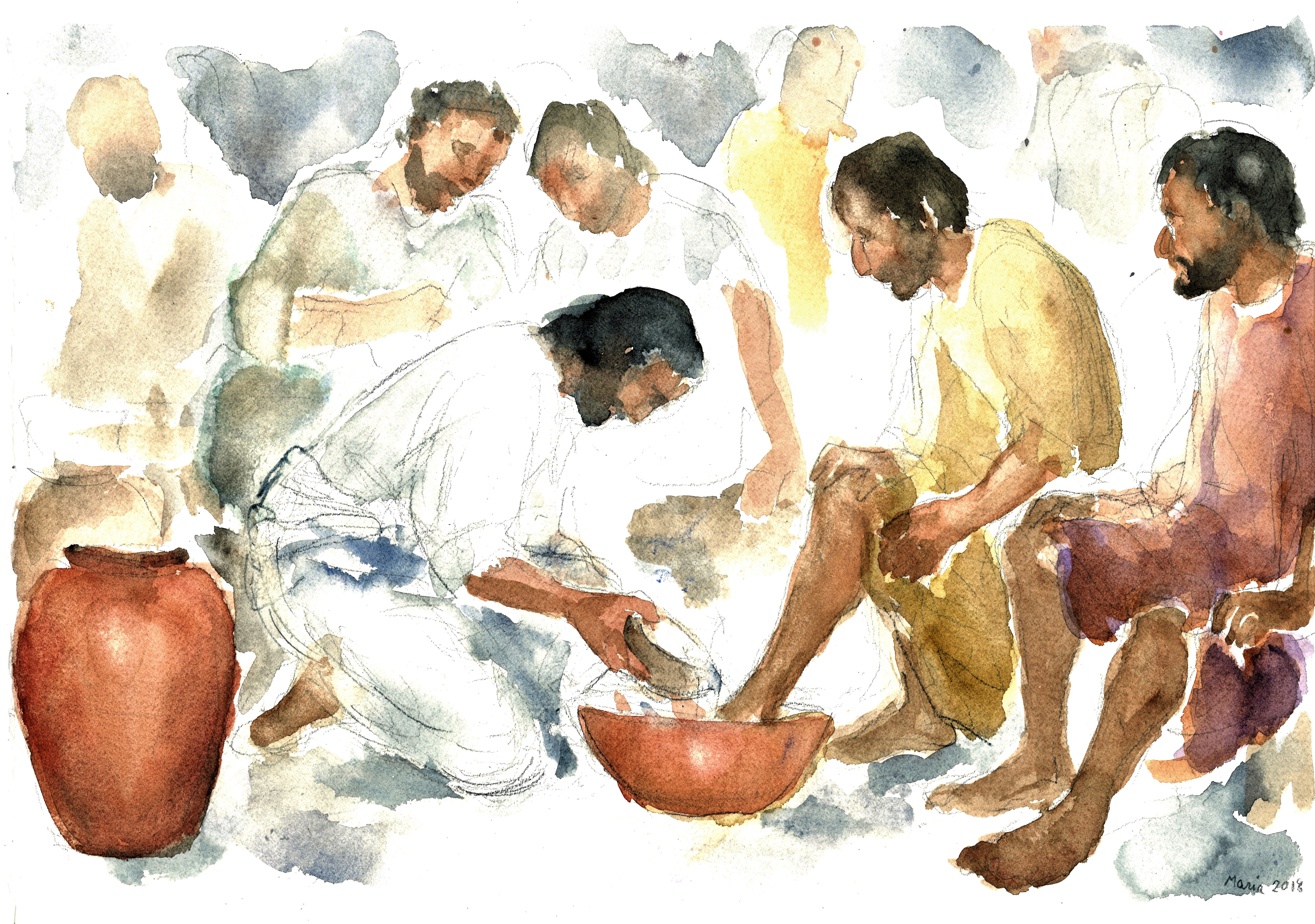 Prima della festa di Pasqua, Gesù, sapendo che era venuta la sua ora di passare da questo mondo al Padre, avendo amato i suoi che erano nel mondo, li amò sino alla fine. Durante la cena, quando il diavolo aveva già messo in cuore a Giuda, figlio di Simone Iscariota, di tradirlo, Gesù, sapendo che il Padre gli aveva dato tutto nelle mani e che era venuto da Dio e a Dio ritornava, si alzò da tavola, depose le vesti, prese un asciugamano e se lo cinse attorno alla vita. Poi versò dell’acqua nel catino e cominciò a lavare i piedi dei discepoli e ad asciugarli con l’asciugamano di cui si era cinto. Venne dunque da Simon Pietro e questi gli disse: «Signore, tu lavi i piedi a me?». Rispose Gesù: «Quello che io faccio, tu ora non lo capisci; lo capirai dopo». Gli disse Pietro: «Tu non mi laverai i piedi in eterno!». Gli rispose Gesù: «Se non ti laverò, non avrai parte con me». Gli disse Simon Pietro: «Signore, non solo i miei piedi, ma anche le mani e il capo!». Soggiunse Gesù: «Chi ha fatto il bagno, non ha bisogno di lavarsi se non i piedi ed è tutto puro; e voi siete puri, ma non tutti». Sapeva infatti chi lo tradiva; per questo disse: «Non tutti siete puri».Quando eb be lavato loro i piedi, riprese le sue vesti, sedette di nuovo e disse loro: «Capite quello che ho fatto per voi? Voi mi chiamate il Maestro e il Signore, e dite bene, perché lo sono. Se dunque io, il Signore e il Maestro, ho lavato i piedi a voi, anche voi dovete lavare i piedi gli uni agli altri. Vi ho dato un esempio, infatti, perché anche voi facciate come io ho fatto a voi».