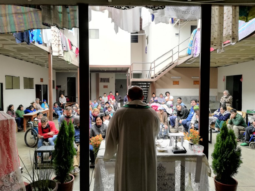Abitano in una Casa Hogar chiamata “Sembrando Esperanza”, messa in piedi alcuni anni fa da Jenny Huaman, una professoressa di religione che conosciamo da tempo, appunto per dar loro una speranza. Si tratta di gente “sconfitta” in qualche modo dalla vita, per la maggior parte senza una famiglia alle spalle: ex-carcerati, ex-prostitute, ammalati di TBC o AIDS, persone con handicap fisico o psichico ecc. ecc.
