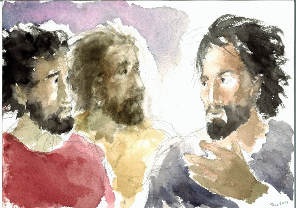 Si aprirono gli occhi e lo riconobbero, acquarello di Maria Cavazzini Fortini, aprile 2017