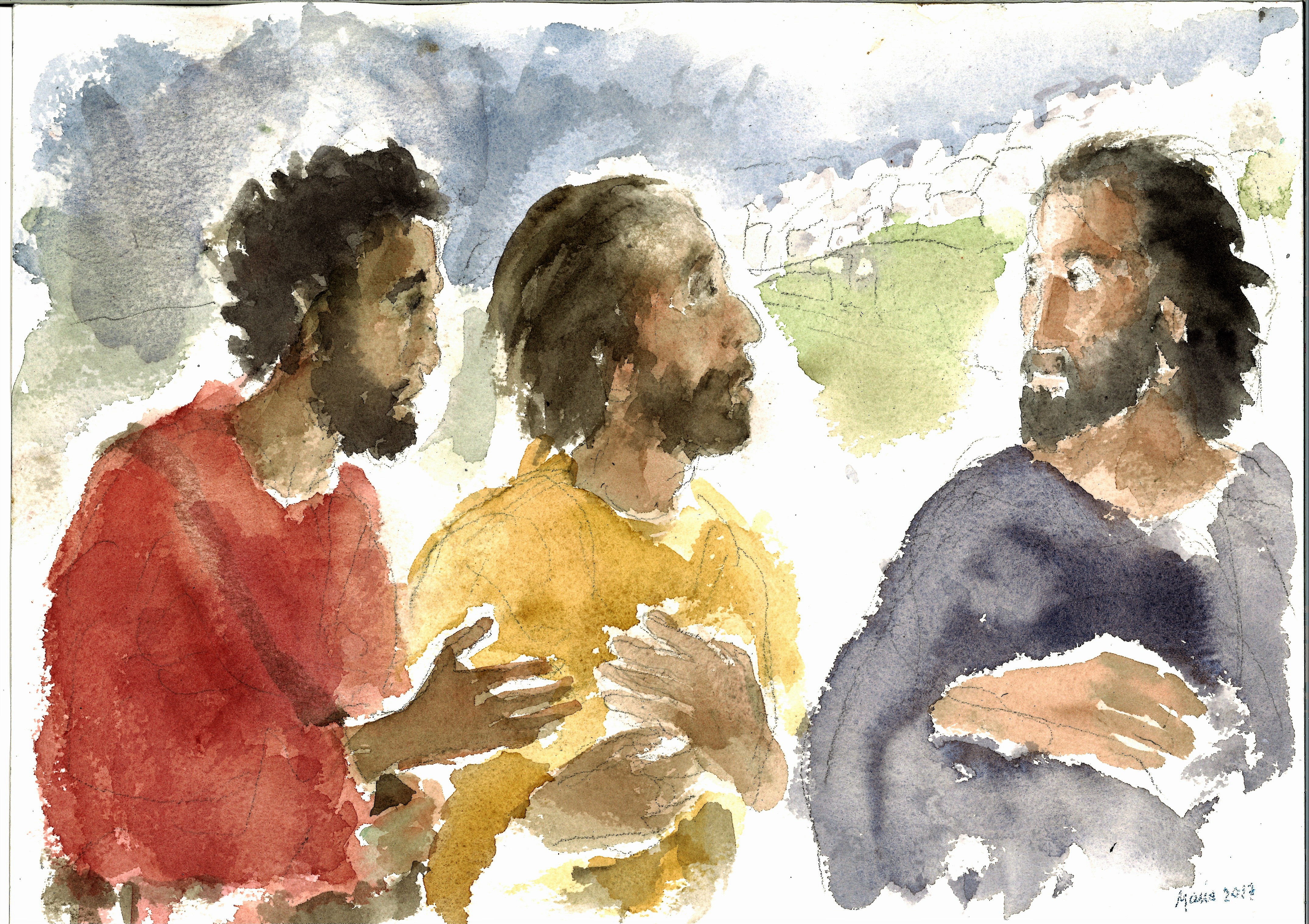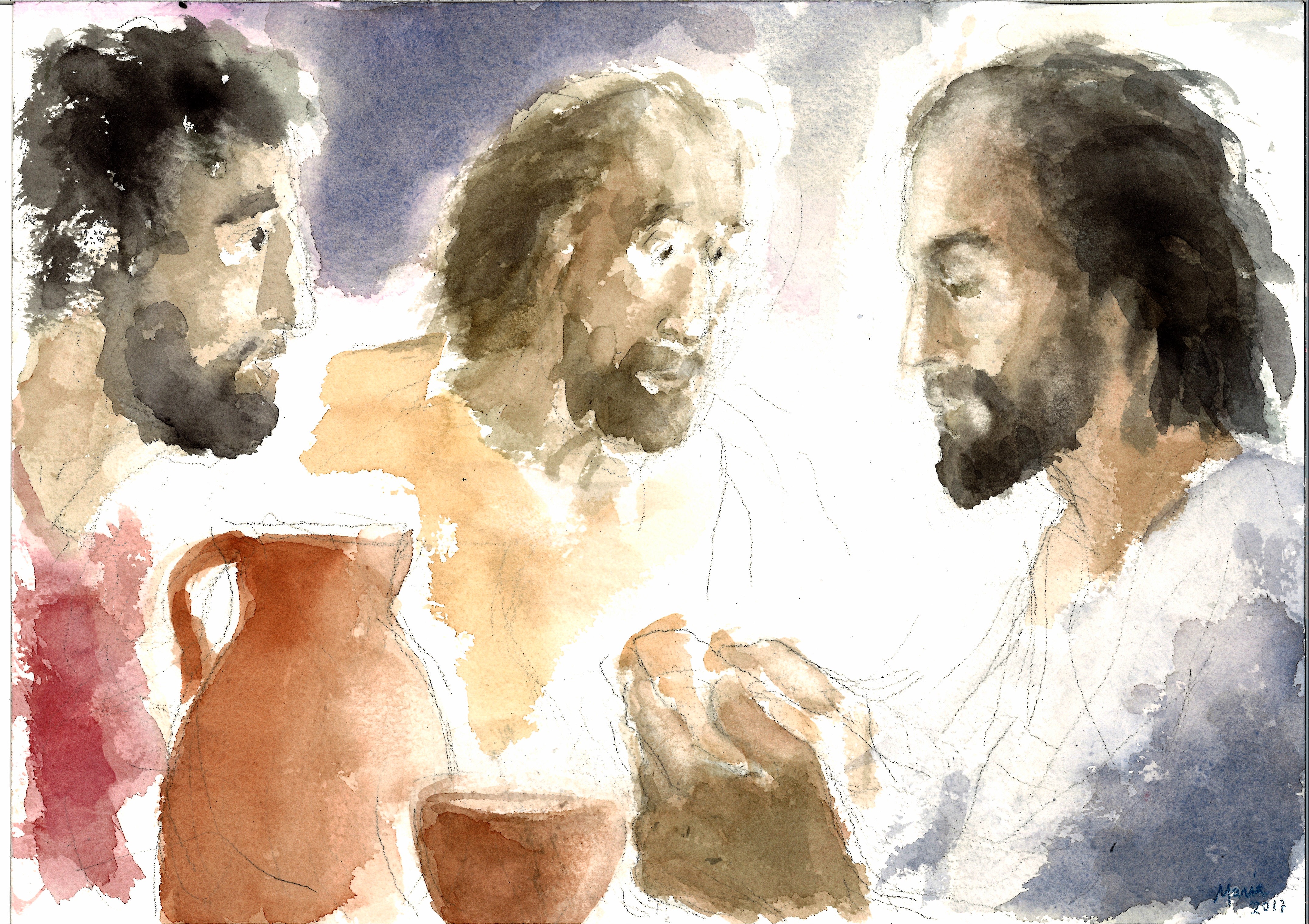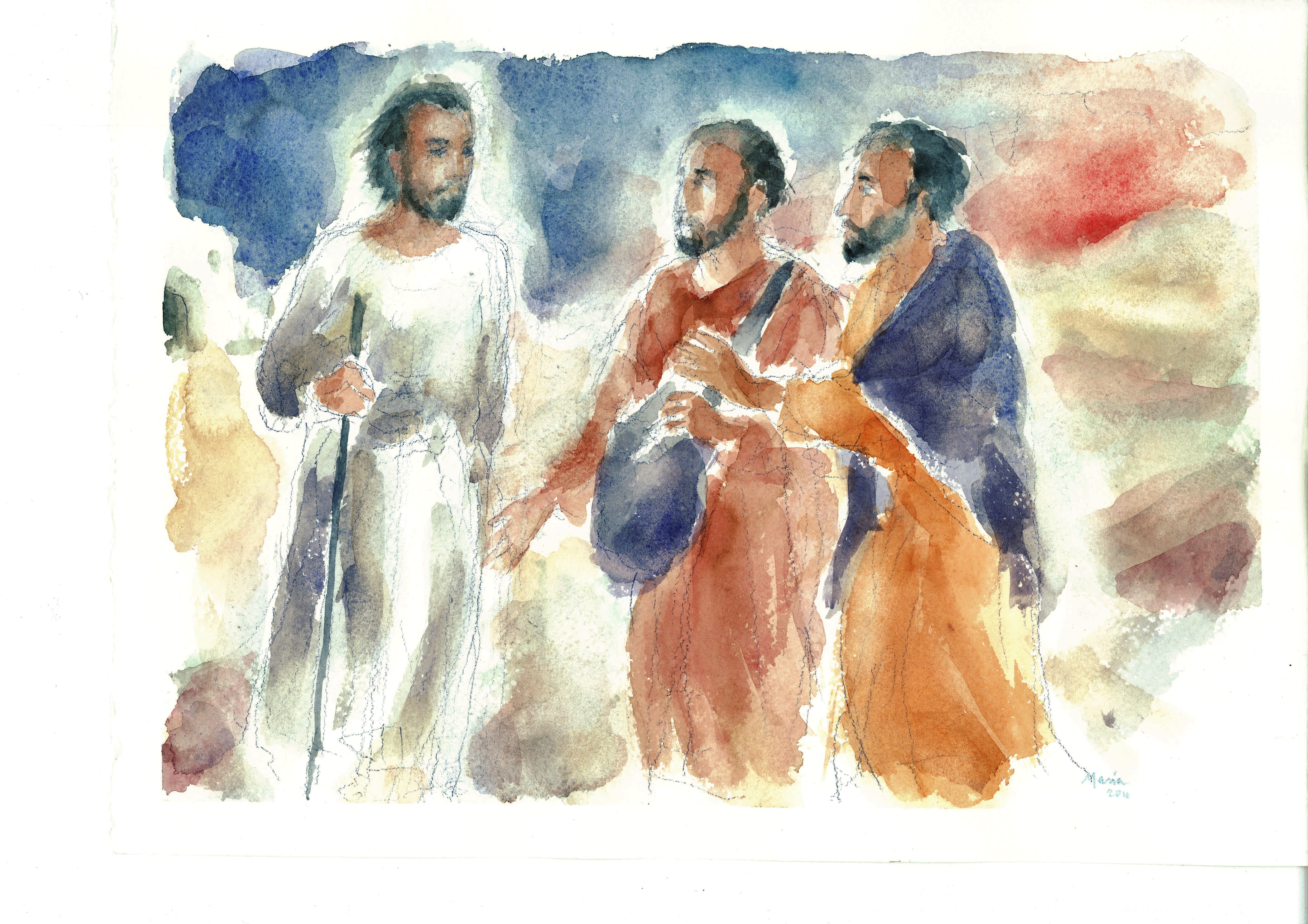 Si aprirono gli occhi e lo riconobbero, acquarello di Maria Cavazzini Fortini, aprile 2017