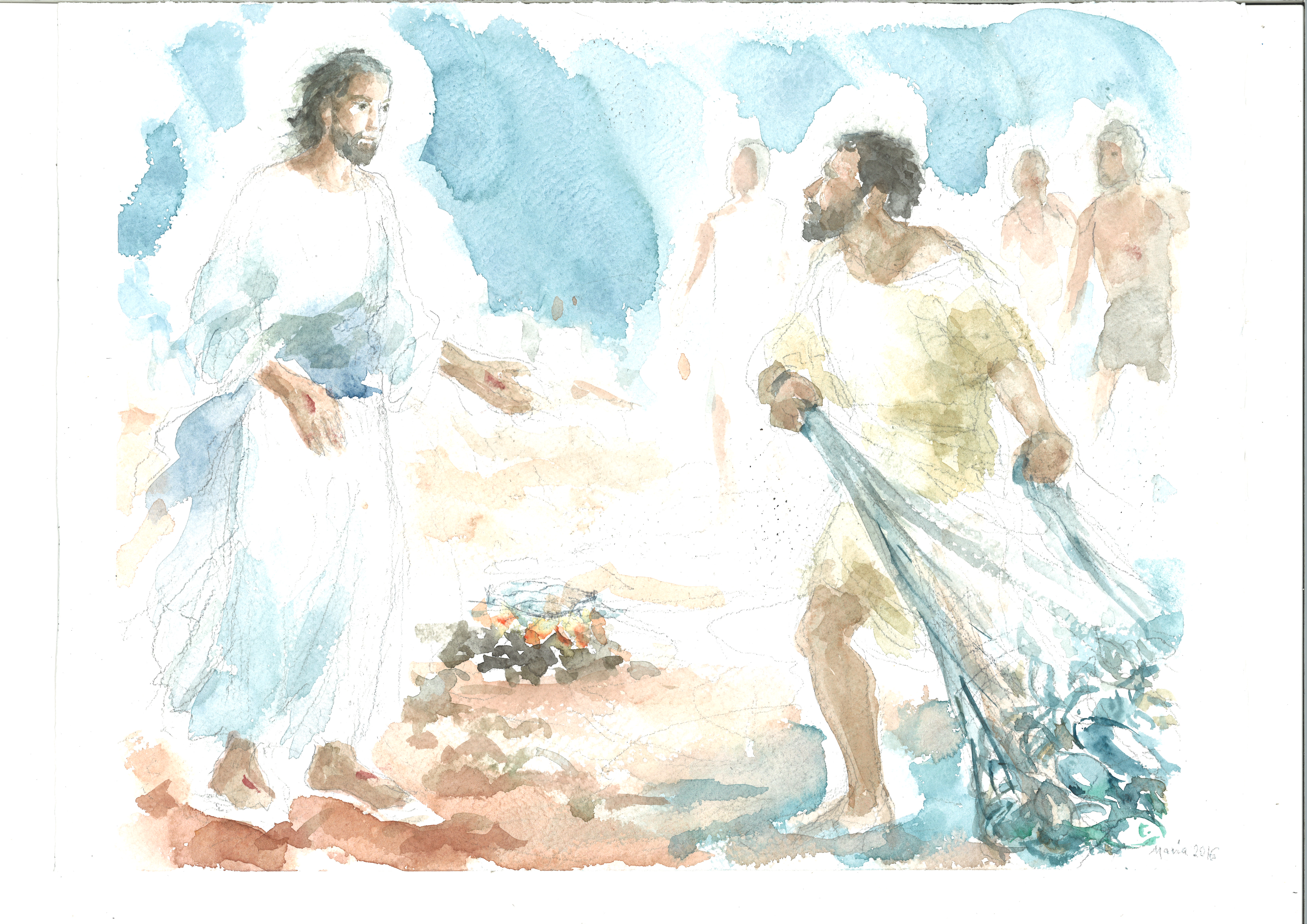 Il racconto evangelico di oggi ci parla della terza apparizione ai discepoli. Gesù è già apparso ai suoi per due volte (Gv 21,14). Tommaso ha resistito, ma alla fine è caduto in ginocchio davanti al Signore. Ora essi sanno che il maestro crocifisso è tornato in vita dal mondo dei morti. Ora sanno che tutto quello che diceva era vero. Ora sanno che Gesù condivide con il Padre la stessa natura divina. Eppure questo racconto sembra quasi suggerire una fede che rientra nell’ombra. Si ritrovano in sette sul familiare mare di Tiberiade (e gli altri quattro dove sono?…). Pietro decide di andare a pescare e gli altri sei lo seguono (Gv 21,3a). C’è un che di regressione in quelle scarne parole. Sembra quasi che si rientri alla vita di prima senza alcuna traccia di quanto è accaduto. Nessuna preghiera, nessuna richiesta, nessun dialogo: il maestro risorto non viene interpellato. L’esito di quella pesca conferma la mia impressione, si è faticato per pescare nulla (Gv 21,3b). La luminosa esperienza di Gesù risorto non ci sottrae alla realtà, sempre presente in chiaroscuro, della nostra umanità fragile nella fede.